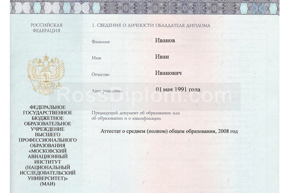В современном дипломе о высшем образовании указаны следующие сведения: