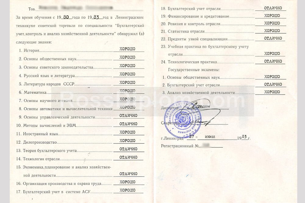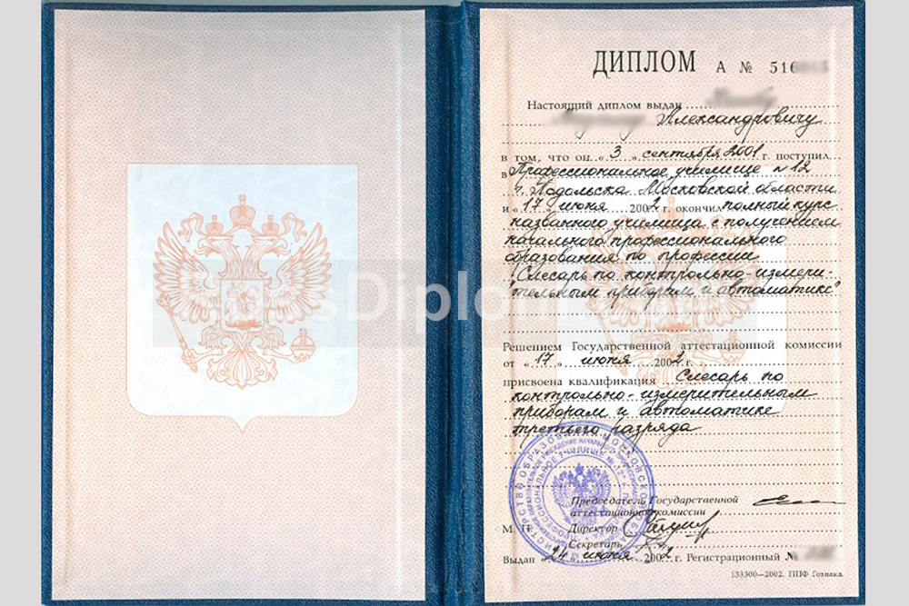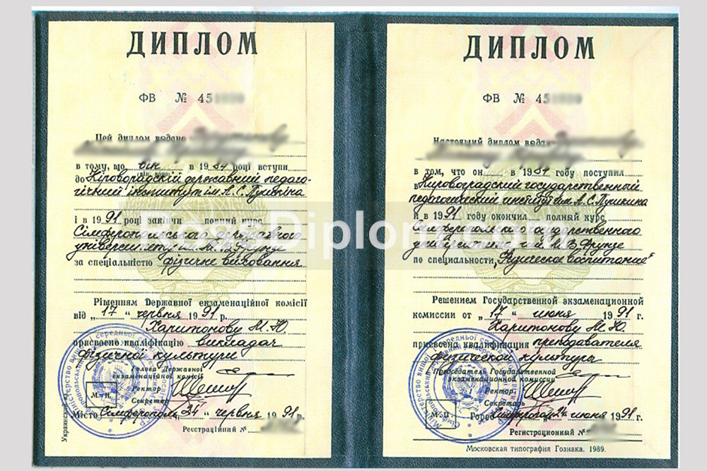 Все дипломы заполняются в соответствии с государственными нормативными актами, а также по образцам реально выданных учебными заведениями документов. Если у Вас есть фото полученного кем-то из Ваших знакомых диплома, можете прислать его нам и получить точную копию, но с Вашими данными. Ниже представлен образцы заполнения корочек по государственным стандартам. Для увеличения фото кликните по ним.